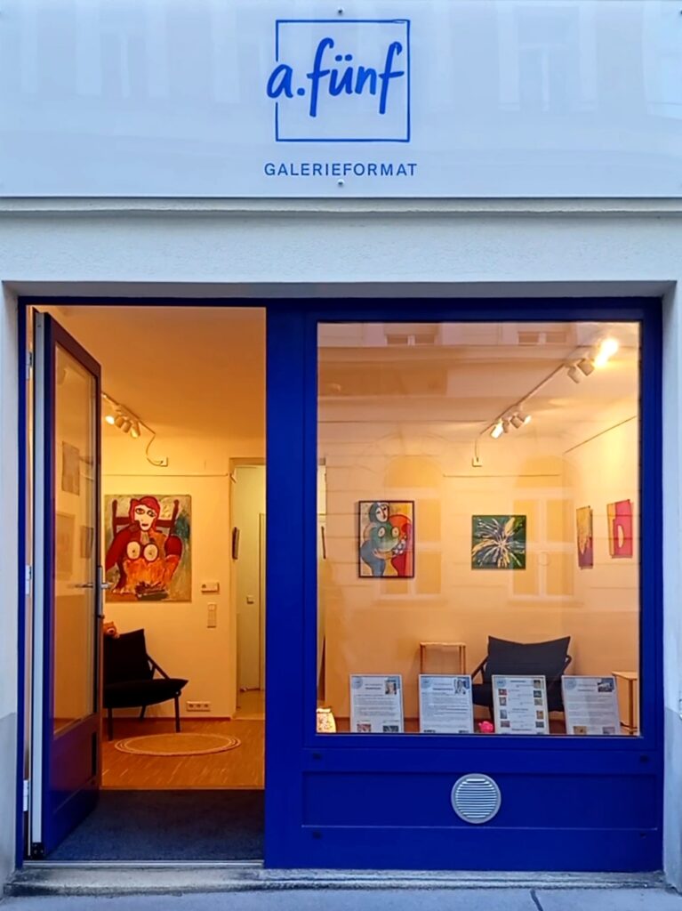 a.fünf – Galerieformat ist ein Ort der Begegnung, zwischen zeitgenössischer Kunst und aufmerksamen Betrachtern, zwischen Künstlerinnen und Künstlern und Kunstliebhaberinnen und Kunstliebhabern. In einem kulturell geprägten Viertel nahe der Mariahilfer Straße und dem Raimund Theater besteht ein Raum für inspirierende Ausstellungen, anregende Gespräche und genussvolle Stunden im Zeichen der Kunst. Eine warme, einladende Atmosphäre verbindet ästhetischen Anspruch mit persönlicher Nähe und lädt zum Verweilen ein.